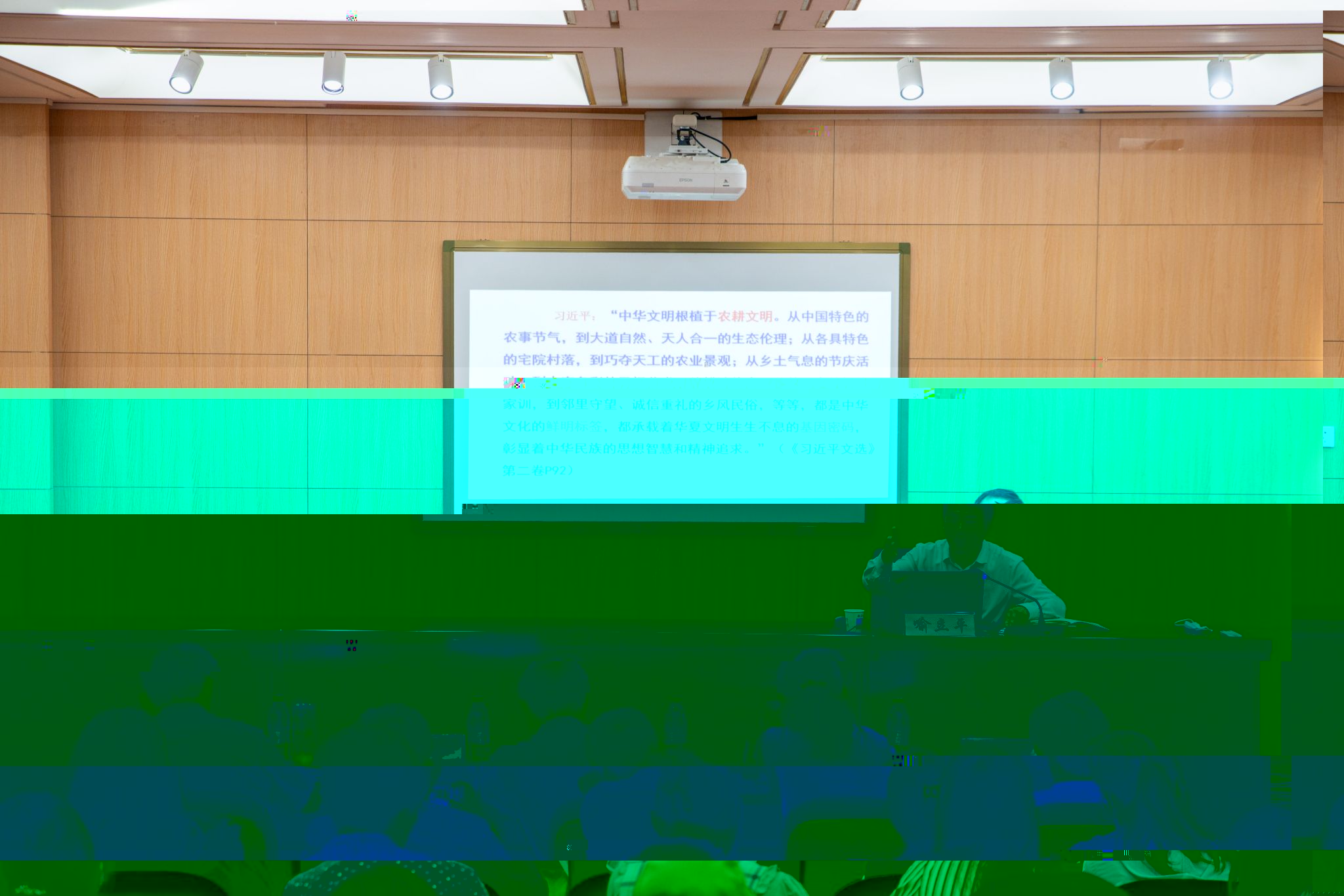 喻立平圍繞學思踐悟習近平新時代中國特色社會主義思想作了題為《“兩個結合”的若幹思考》的輔導報告。喻立平從“兩個結合”與黨的百年曆程、“兩個結合”與中華文明之根、“兩個結合”與中華文化基因、“兩個結合”與傳統修養功夫以及“兩個結合”與馬院建設方向等五個方面詳細闡釋了馬克思主義理論和中華優秀傳統文化相結合的重大意義。喻立平強調,“兩個結合”的若幹思考,對于我們高校馬院的建設方向提供了重要參考,我們要牢記習近平總書記的教導:“隻有堅持從曆史走向未來,從延續民族文化血脈中開拓前進,我們才能做好今天的事業。”