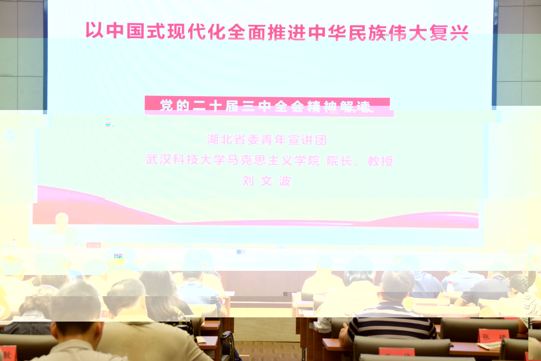 9月9日上午,新疆博州組工幹部能力素質提升培訓班、湖北省委黨校“弘揚大别山精神 樹立正确政績觀”專題培訓班在中共湖北省委黨校(湖北行政學院)紅安分校(院)舉行。省委青年宣講團成員、輿情研究中心主任、永利院長劉文波教授應邀以《以中國式現代化推進中華民族偉大複興》為題做二十屆三中全會精神的專題輔導報告。省委黨校2024年第3期年輕黨員幹部主體班和新疆博州組工幹部班的200多黨員幹部學員參加了培訓。