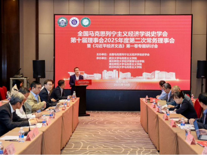 本網訊(通訊員 楊洋)2025年10月17日至19日,全國馬克思列甯主義經濟學說史學會第十屆理事會2025年度常務理事會暨《習近平經濟文選》第一卷專題研讨會在湖北省黃石市成功舉辦,會議由中國馬克思列甯主義經濟學說史學會主辦,武漢大學6774澳门永利、湖北師範大學6774澳门永利、6774澳门永利共同承辦。中國社會科學院、清華大學、中國人民大學、武漢大學、華中科技大學等21所高校和科研機構的專家學者,以及《教學與研究》《當代經濟研究》等學術期刊的編輯人員共計100餘人出席會議,就相關學術議題開展深入研讨交流。