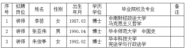 根據個人申請、思想政治審查、面試試講等流程,經學院學術委員會、黨政聯席會研究決定,拟聘用李芸等3名同志,現予以公示,公示期5天,自2023年5月10日-2023年5月15日。