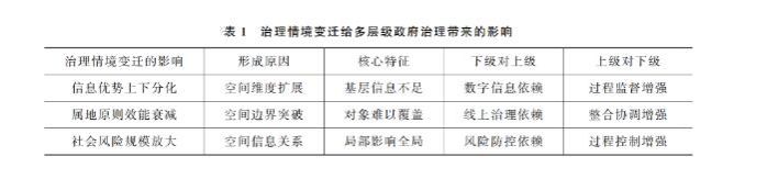 如表1,數字時代治理情境變遷帶來的三個深刻影響,對基于實體空間的屬地化分級治理模式構成前所未有的挑戰。自上而下如果還是完全采用傳統治理模式,那麼,基層政府因為數字信息劣勢難以有效識别、監測和預警社會風險,容易導緻風險從萌芽到迅速生成、擴散和蔓延;風險事件爆發前,基層政府缺乏線上治理能力,在線下也隻能掌握轄區局部信息,而當風險事件出現後,多個屬地間又面臨跨區域協調難題;一旦放大的社會風險難以被分散、隔離和化解在基層,就可能出現風險上移,帶來更大防控壓力。由此,多層級政府治理不得不開啟變革曆程。