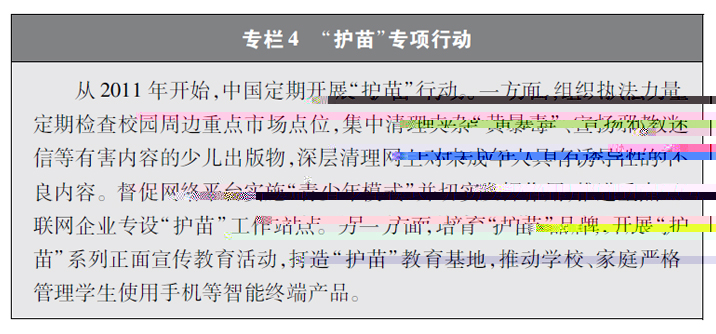 堅持對未成年人優先保護、特殊保護,構建有利于未成年人上網的良好環境。通過開展“護苗”、未成年人網絡環境專項治理等行動,圍繞網絡違法和不良信息、沉迷網絡遊戲、網絡不良社交等問題進行重點整治,淨化未成年人網絡環境。加強未成年人網絡安全教育,依法懲處利用網絡從事危害未成年人身心健康的活動,形成家庭、學校、社會多方位保護合力,營造良好安全的未成年人網絡環境。