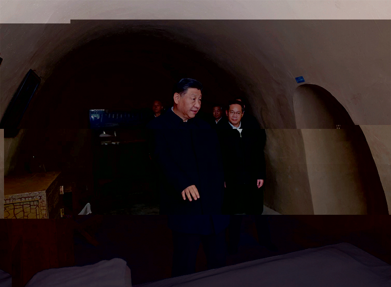 2022年10月27日,中共中央總書記、國家主席、中央軍委主席習近平帶領中共中央政治局常委李強、趙樂際、王滬甯、蔡奇、丁薛祥、李希,瞻仰延安革命紀念地。這是習近平等在楊家嶺參觀毛澤東舊居。 新華社記者 鞠鵬/攝