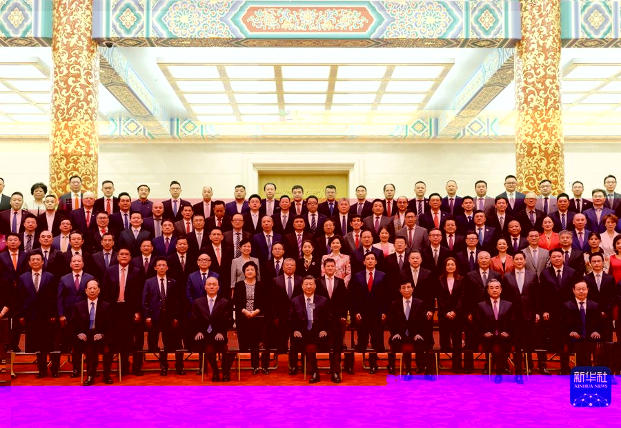 5月8日,黨和國家領導人習近平、王滬甯、蔡奇等在北京人民大會堂會見第十屆世界華僑華人社團聯誼大會代表。新華社記者 李學仁 攝