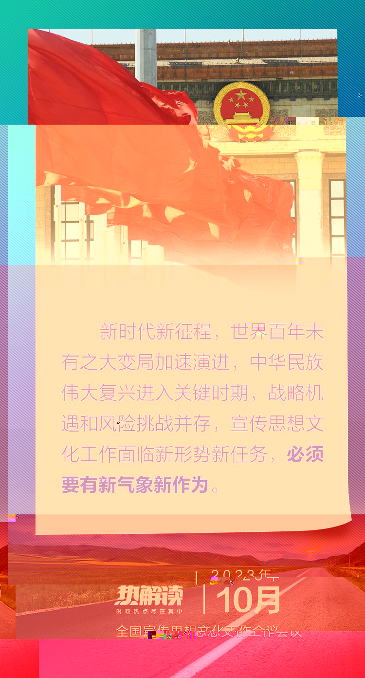 這次全國宣傳思想文化工作會議要求,持續加強對習近平文化思想的學習、研究、闡釋,并自覺貫徹落實到宣傳思想文化工作各方面和全過程,同時也對推動各項工作落地見效提出明确要求:從堅持不懈用習近平新時代中國特色社會主義思想凝心鑄魂,到鞏固壯大奮進新時代的主流思想輿論;從廣泛踐行社會主義核心價值觀,到促進文化事業和文化産業繁榮發展;從加強和改進對外宣傳工作,到堅決有效防範化解意識形态風險。每一項都要以釘釘子精神落到實處,每一項都要展現新氣象新作為。