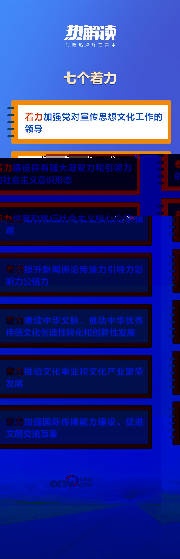 在這次對宣傳思想文化工作的重要指示中,總書記提出了“七個着力”的重要要求,為新時代文化建設明确了路線圖和任務書。