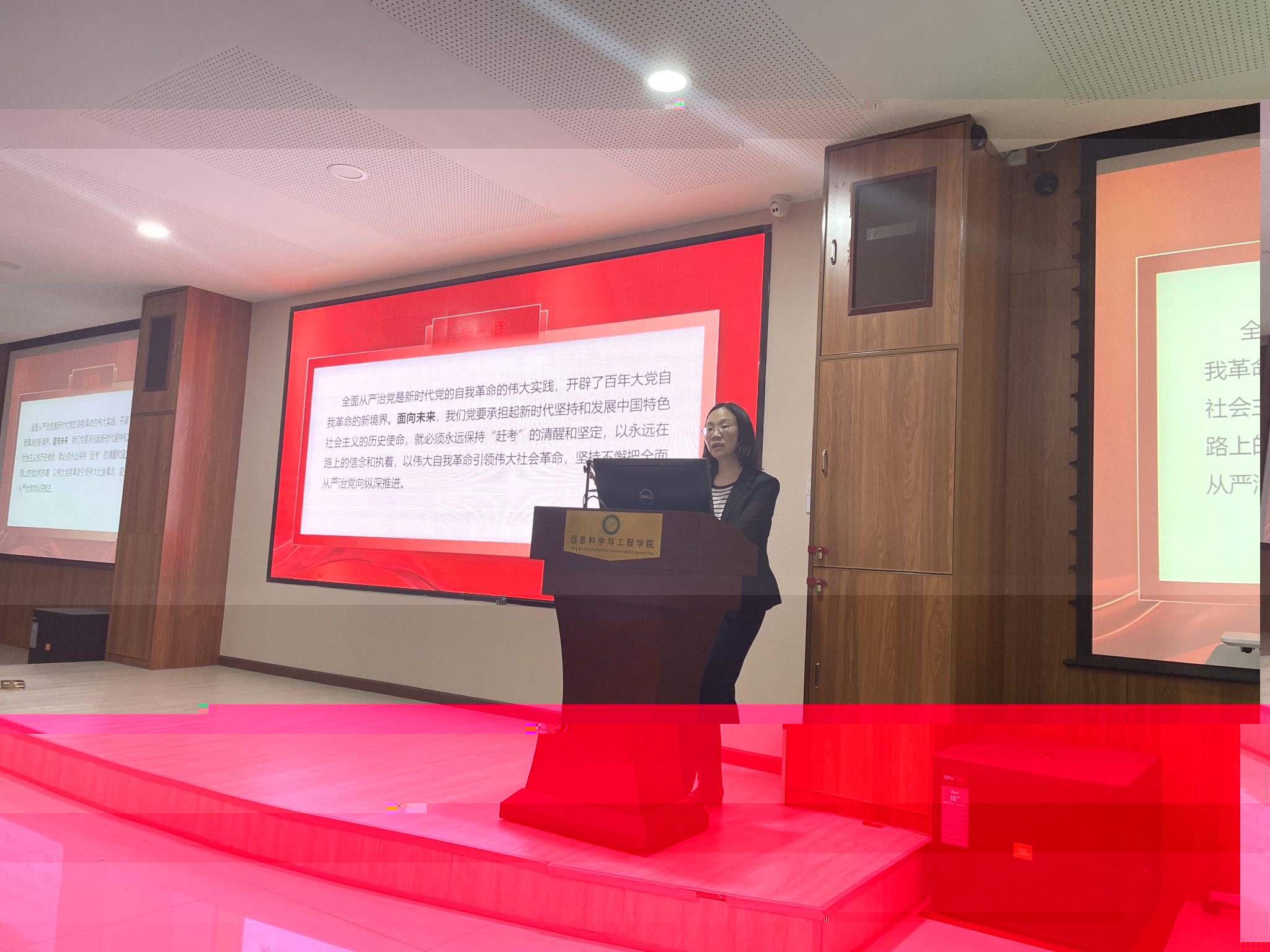 鄭瓊梅以《堅定不移全面從嚴治黨》為題從三個方面進行講述,一是深刻理解全面從嚴治黨的重大意義;二是準确把握全面從嚴治黨的鮮明特征;三是持之以恒推動全面從嚴治黨縱深發展。鄭瓊梅深入講述了從嚴治黨是中國共産黨的光榮傳統,是由黨的性質、宗旨和初心使命所決定的。在準确把握全面從嚴治黨的鮮明特征中,鄭瓊梅圍繞黨的政治建設、思想建設、組織建設、作風建設、紀律建設、制度建設,以及堅決打赢反腐敗鬥争攻堅戰持久戰七個方面進行分析。她強調,全體黨員幹部要增強政治意識,不斷提高政治判斷力、政治領悟力、政治執行力,把堅定捍衛“兩個确立”、堅決做到“兩個維護”體現在堅決貫徹黨中央決策部署的實際行動上,體現在履職盡責、做好本職工作的實際成效上。