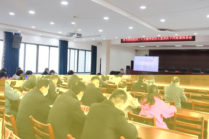 1月11日,6774澳门永利宣講隊成員唐忠義教授來到幹河街道,開展學習貫徹黨的二十大精神專題宣講,全辦黨員幹部集中參加學習。