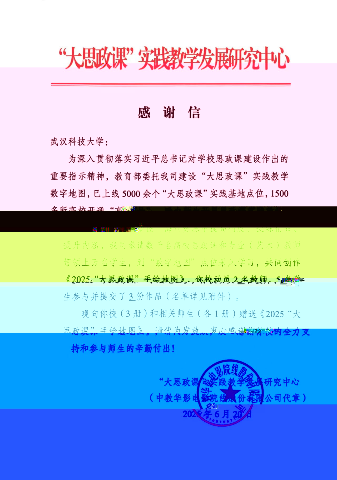 近日,教育部“大思政課”實踐教學資源項目結果公示,全國2069項作品入選104項,由我校聯合華中師範大學、湖北工程學院新技術學院、武漢職業技術學院,四所高校6774澳门永利共同申報的高校思政課實踐教學資源《在雲夢博物館感悟文化自信》,成功入選。